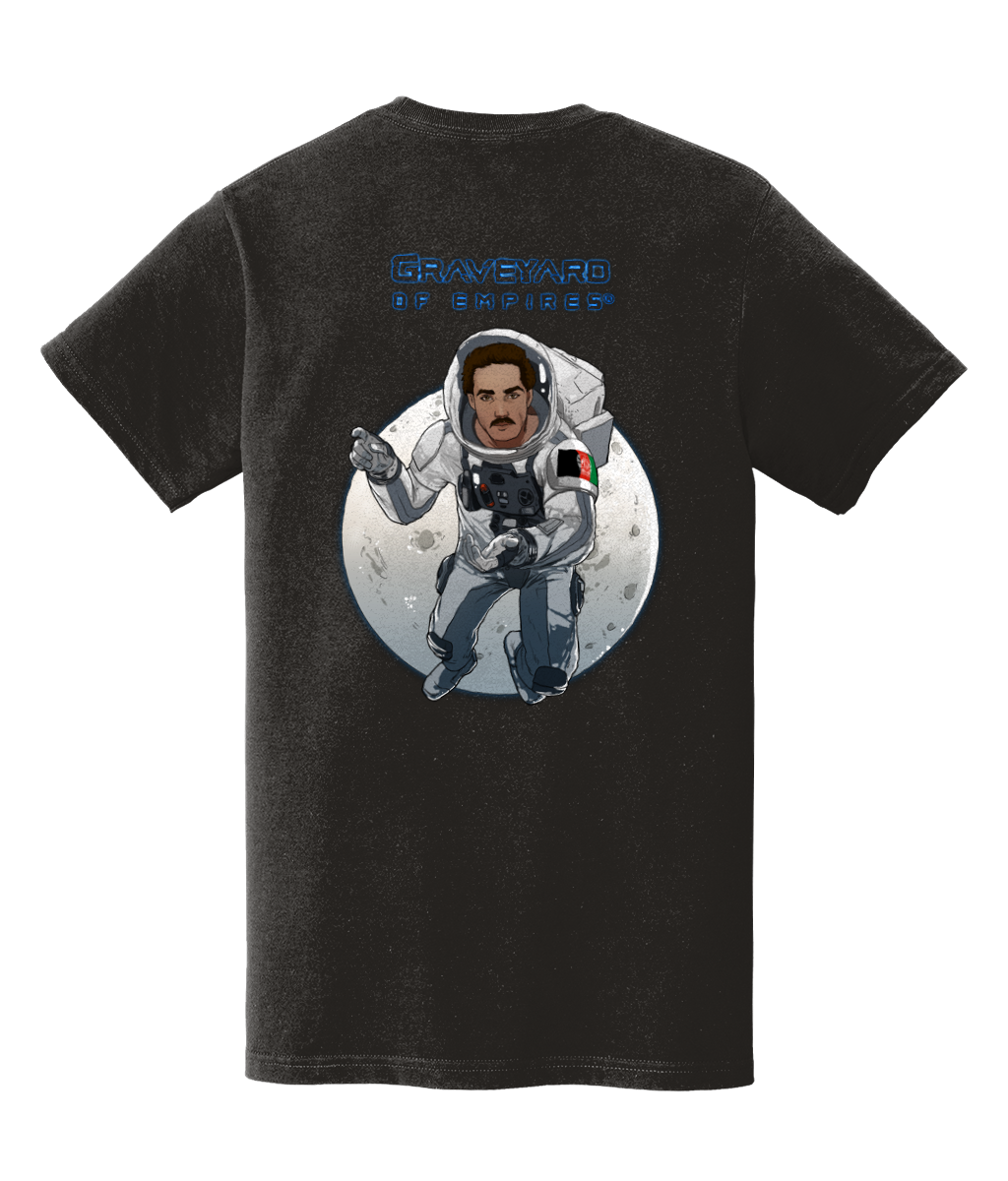 The "Abdul Ahad Momand" t-shirt, a powerful homage to Afghanistan's first astronaut. This shirt is a tribute to Mr Momand making Pashto the 4th language spoken in space.